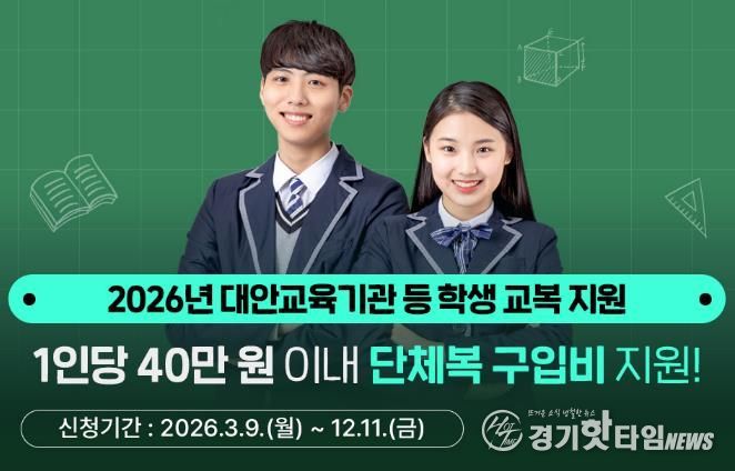 [경기핫타임뉴스=김삼영 기자] 경기도는 시군과 협력해 교복, 체육복 등 단체복 구입비 최대 40만 원을 지원한다. 지원 대상은 입·전학일 기준 경기도에 주민등록을 둔 도 내·외 대안교육기관 중·고등학교 1학년 입학생과 다른 시도에 소재한 중·고등학교 1학년 입학생이다.