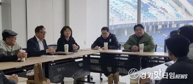 [경기핫타임뉴스=김삼영 기자] 수원시 팔달구 우만1동은 지난 9일, 수원블루윙즈 사무실에서 경기장 주변 주민이 겪는 불편사항 해소를 위한 간담회를 개최하고, 불법주정차 등 주민 불편사항 해결을 위해 수원블루윙즈 관계자와 논의를 진행했다.