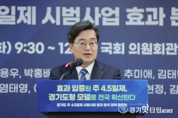 [경기핫타임뉴스=김삼영 기자] 김동연 경기도지사가 경기도형 주4.5일제 도입 효과가 입증됐다며 전국적 확산과 대기업·중소기업 상생협력 모델 도입 의지를 강하게 밝혔다.