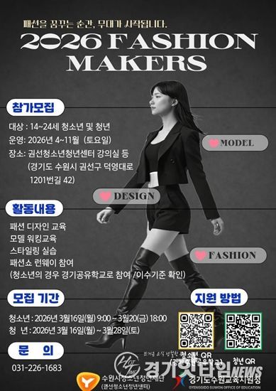 [경기핫타임뉴스=김삼영 기자] 수원시청소년청년재단 권선청소년청년센터는 패션 분야 진로에 관심 있는 청소년과 청년을 대상으로 ‘패션메이커스(Fashion Makers)’ 프로그램 참가자를 모집한다.
