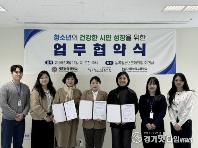 [경기핫타임뉴스=김삼영 기자] 시흥시청소년청년재단의 시흥시능곡청소년문화의집은 지난 3월 12일 시흥시능곡청소년문화의집 회의실에서 시흥능곡중학교, 시흥능곡고등학교와 청소년이 건강한 시민으로 성장할 수 있는 기반 마련을 위한 상호 업무협약을 체결했다.