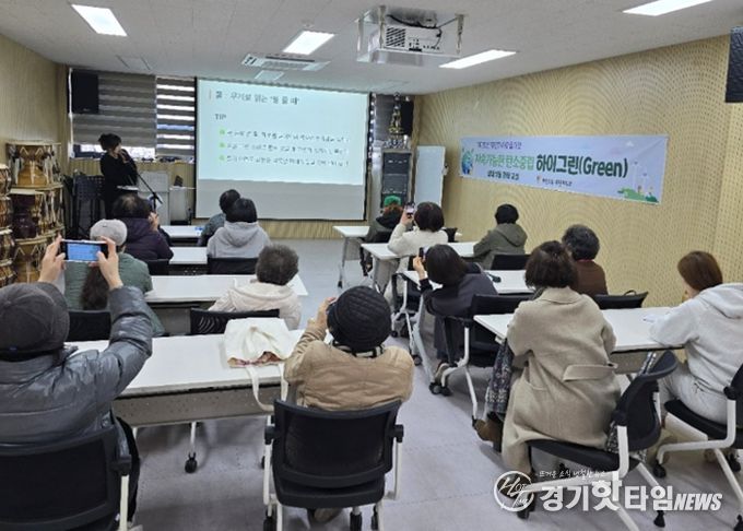 [경기핫타임뉴스=김삼영 기자] 광명시 하안2동 주민자치회는 13일 하안2동 행정복지센터에서 주민자치 마을사업인 ‘지속가능한 탄소중립 하이그린’ 프로그램의 일환으로 ‘실내 식물 관리 교실’ 1주차 수업을 진행했다.