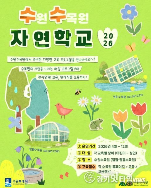 수원시 공원녹지사업소 관계자는 “수원수목원이 자연을 배우고 경험하는 열린 교육 공간으로 자리 잡길 바란다”며 “시민이 일상에서 자연의 소중함을 느낄 수 있도록 수목원 프로그램을 확대해 나가겠다”고 말했다.