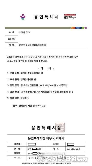 이에 시는 시청 누리집과 용인시계약정보시스템에 해당 사실을 공지해 유사 피해 방지에 총력을 기울이고 있다.