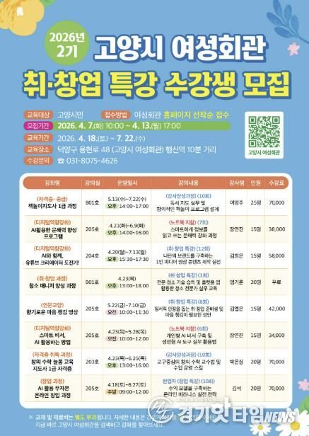[경기핫타임뉴스=김형철 기자] 고양특례시 여성회관이 오는 4월 7일부터 2026년 취·창업 특강(2기) 수강생을 모집한다.