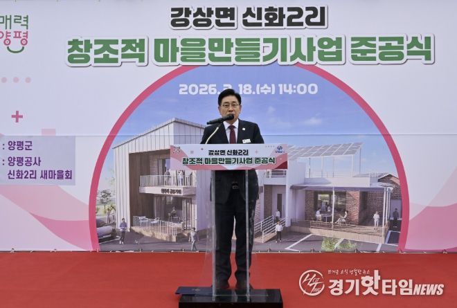 [경기핫타임뉴스=김형철 기자] 양평군은 지난 18일 창조적 마을만들기 사업으로 조성한 ‘신화2리 마을회관’ 준공식을 개최했다. 이날 행사에는 전진선 양평군수를 비롯해 지민희 양평군의회 부의장, 송진욱 군의원, 마을 주민 등 100여 명이 참석해 준공을 축하했다.