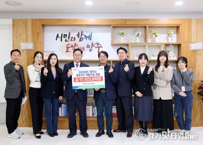 [경기핫타임뉴스=김형철 기자] 양주시는 3월 18일 오후 NH농협 양주시지부로부터 '2025년 제휴카드 사용을 통해 적립된 기금 97,925천원을 전달받았다고 밝혔다.