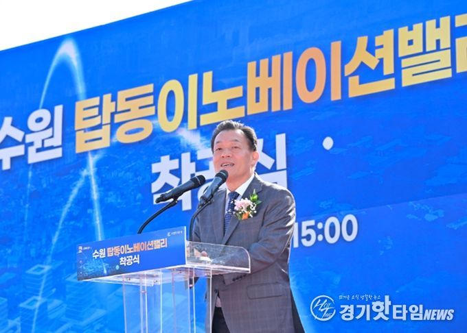 이재준 시장은 19일 권선구 탑동 540-537번지 현장에서 열린 탑동 이노베이션밸리 착공식에서 “탑동 이노베이션밸리가 수원에 미래 세대를 위한 첨단산업 생태계를 조성하는 첫걸음이 될 것”이라며 “탑동 이노베이션밸리에 들어설 첨단산업단지가 강소기업들이 성장하는 기반이 되길 바란다”고 밝혔다.