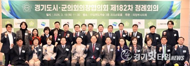 [경기핫타임뉴스=김형철 기자] 경기도 31개 시·군의회 의장들이 한자리에 모여 지방자치 발전을 위한 협력 방안을 논의하는 경기도시·군의회의장협의회 제182차 정례회의가 3월 19일, 의정부시 아일랜드캐슬에서 개최됐다.