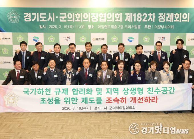 [경기핫타임뉴스=김형철 기자] 경기도시군의회의장협의회 회장인 동두천시의회 김승호 의장이 제안한 '국가하천 규제 합리화 및 지역 상생형 친수공간 조성을 위한 제도 개선 촉구 건의안'이 19일 의정부 아일랜드캐슬에서 열린 제182차 정례회의에서 만장일치로 채택됐다.