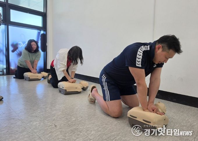 [경기핫타임뉴스=김형철 기자] 여주도시공사가 운영하는 가남체육센터는 3월 19일 체육시설 이용 중 발생할 수 있는 심정지 등 응급상황에 대비하여 직원 대상 자체 모의훈련을 실시했다.