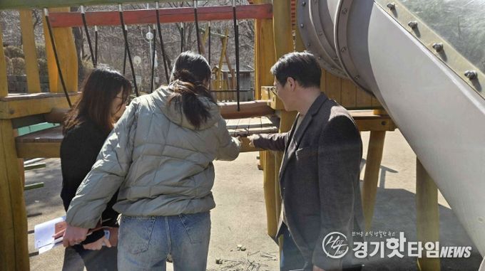 [경기핫타임뉴스=김삼영 기자] 과천시는 3월 개학기를 맞아 어린이들이 안전하게 마음껏 뛰어놀 수 있는 환경을 조성하기 위해 관내 도시공원과 어린이집 내 어린이놀이시설 6개소를 대상으로 지난 19일부터 20일까지 양일간 지도·점검을 실시했다고 밝혔다.