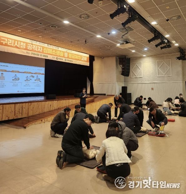[경기핫타임뉴스=김형철 기자] 구리시는 3월 16일부터 4월 28일까지 총 16기에 걸쳐 시청 대강당에서 공직자 400명을 대상으로 '심폐소생술 등 응급처치 교육'을 실시하고 있다고 밝혔다.
