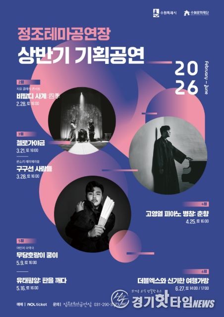[경기핫타임뉴스=김삼영 기자] 수원문화재단은 오는 4월부터 6월까지 정조테마공연장에서 전통예술의 현대적 확장을 주제로 한 기획공연 4편을 선보인다.