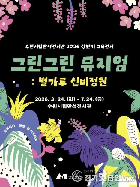 [경기핫타임뉴스=김삼영 기자] 경기도 수원시립미술관은 자연과의 관계를 성찰하고 생태적 가치를 체험하는 참여형 교육전시 《그린그린 뮤지엄 : 별가루 신비정원》을 3월 24일부터 7월 24일까지 수원시립만석전시관에서 개최한다.