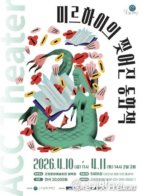 [경기핫타임뉴스=김삼영 기자] 군포문화재단은 어린이와 가족이 함께 관람할 수 있는 공연 '미르하이의 찢어진 동화책'을 4월 10일~11일 군포문화예술회관 철쭉홀에서 개최한다고 밝혔다. 이번 공연은 2026 국립아시아문화전당재단 어린이 공연 유통 공모사업의 일환으로, 국립아시아문화전당(ACC) 창·제작 어린이 공연을 지역에 소개하기 위해 마련됐다.