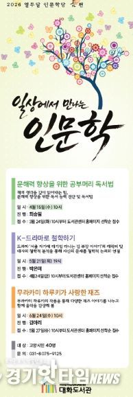 [경기핫타임뉴스=김형철 기자] 고양특례시 대화도서관의 대표 인문학 프로그램인 ‘열두달 인문학당’이 오는 4월부터 ‘일상에서 만나는 인문학’이라는 주제로 진행된다.