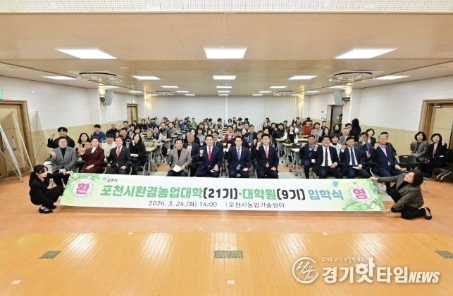 [경기핫타임뉴스=김형철 기자] 포천시는 지난 24일 포천시농업기술센터 대강당에서 신입생과 내빈 등 100여 명이 참석한 가운데 ‘2026학년도 포천시환경농업대학(22기) 및 대학원(9기) 입학식’을 개최했다.