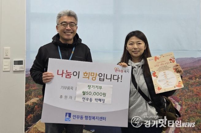[경기핫타임뉴스=김삼영 기자] 수원시 장안구 연무동은 지난 23일, 관내에 15년째 거주하고 있는 외국인 가족이 어려운 이웃을 위해 써달라며 매월 정기후원을 약정했다는 훈훈한 소식을 전했다.