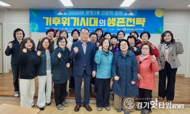 [경기핫타임뉴스=김삼영 기자] 광명시 광명3동 주민자치회(회장 민병돈)는 기후위기 시대에 대응하는 시민 의식을 확산하기 위해 지난 26일부터 27일까지 이틀간 ‘기후위기 시대의 생존전략’ 인문학 특강을 개최했다.