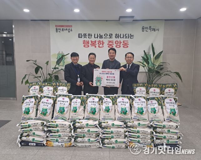 용인신협은 23일 중앙동에 23일 백미 10㎏ 53포(161만 원 상당)를 기탁했다. 이번에 전달한 쌀은 지난 16일 용인신협 본점 이전 기념식에서 축하 화환 대신 받은 백미로 마련했다. 백미는 지역 취약계층 가구에 전달할 예정이다. 용인신협은 지난해 김치 10㎏ 150통, 이불 20세트와 학용품 25세트를 지원하는 등 지역사회와 함께하는 나눔 활동을 꾸준히 이어오고 있다. 정 이사장은 “신협의 나눔 가치를 바탕으로 지역사회에 보탬이 되고자 했다”며 “앞으로도 나눔 활동을 지속해 나가겠다”고 했다.