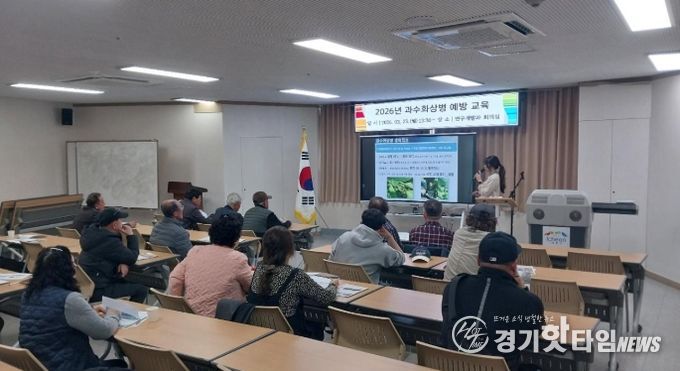 [경기핫타임뉴스=김형철 기자] 이천시농업기술센터는 지난 23일 사과와 배 등 장미과 작물에 발생하는 화상병 예방을 위해 지역 농업인을 대상으로 교육을 진행했다. 이번 교육은 두 번째 과정으로, 사과․배 재배 농업인은 매년 최소 1회 이상 관련 교육을 이수해야 한다.