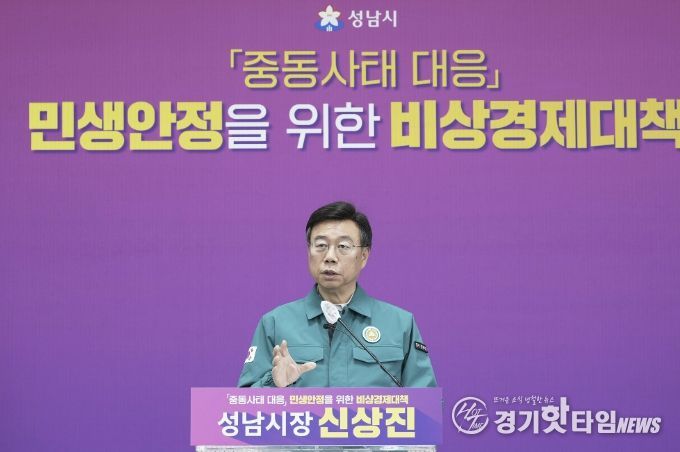 신상진 성남시장은 이날 오전 11시 시청 모란관에서 중동사태 대응 민생안정을 위한 비상경제 대책 기자회견을 열고 “중동 사태로 인한 서민 경제 부담을 완화하고, 지방정부가 앞장서 지원에 나설 수 있도록 중앙정부가 역할을 다해주기를 바란다”며 국가 재난 선포 필요성을 강조했다.