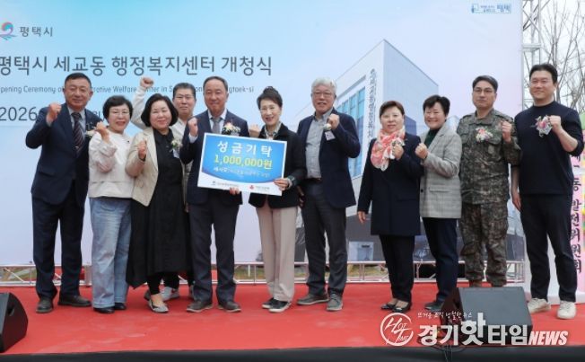 [경기핫타임뉴스=김삼영 기자] 평택시 세교동 관내 봉사단체 ‘세사모’는 지난 30일, 세교동 행정복지센터 개청식을 맞아 어려운 이웃을 위해 써달라며 성금 100만 원을 기부했다.