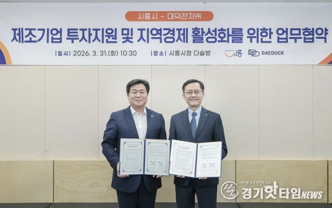 [경기핫타임뉴스=김삼영 기자] 시흥시는 지난 3월 31일 시청 다슬방에서 대덕전자(주)와 ‘제조기업 투자지원 및 지역경제 활성화를 위한 업무협약’을 체결했다.