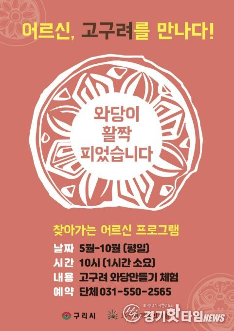 구리시 관계자는 “이번 프로그램을 통해 어르신들이 고구려 문화를 직접 체험하며 활력 있는 시간을 보내시길 바란다”라며 “세대 간 문화 향유 격차를 해소하고 우리 역사에 대한 자긍심을 높이는 계기가 되길 기대한다”라고 밝혔다.
