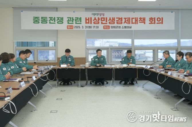 [경기핫타임뉴스=김형철 기자] 양평군은 지난 3월 31일 ‘비상민생경제대책회의’를 개최하고, 중동 사태에 따른 유가 및 물가 불안에 선제적으로 대응하기 위해 4월 1일부터 ‘중동위기 대응 비상경제 TF’를 가동한다고 밝혔다.