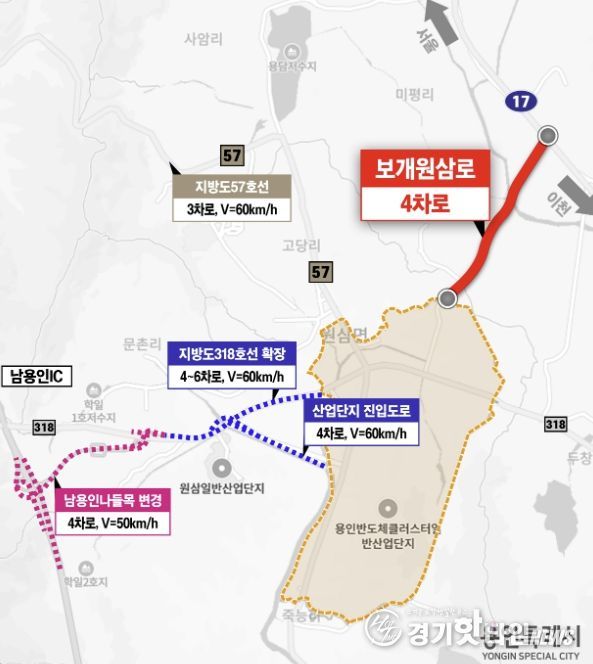 이 도로는 세종포천고속도로 남용인 나들목(IC)과 직접 연결되는 구간으로 반도체 클러스터 일반산단의 물류 수송과 출퇴근 교통을 동시에 처리하는 핵심축이다.