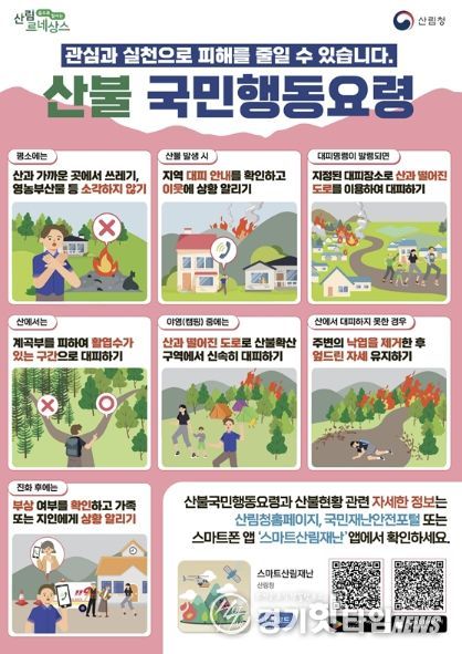 교육과 홍보 내용은 ▲산불 주요 발생 원인 ▲산림과 산림인접지 내 금지행위 ▲지역내 산불 사례 전파 ▲산림재난방지법에 따른 과태료 규정 등이다. 구는 각 읍·면·동에 산불예방 국민행동요령 홍보물과 산불예방 영상자료 등 다양한 홍보 자료를 배부해 예방 효과를 높일 방침이다.