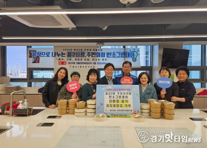 [경기핫타임뉴스=김삼영 기자] 광명시 철산2동 주민자치회는 지난 1일 지역 주민들과 함께 저탄소·친환경 식재료로 만든 음식을 ‘광명마을냉장고(연서로 10)’에 기부하며 탄소중립 실천에 앞장섰다.