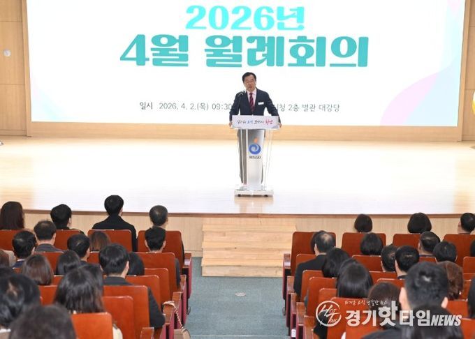 [경기핫타임뉴스=김형철 기자] 하남시는 2일 시청 별관 대강당에서 직원과 시민들이 참석한 가운데 ‘2026년 4월 월례회의’를 개최했다.