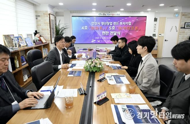 [경기핫타임뉴스=김삼영 기자] 안산시는 지난 2일, 안산시 청년창업펀드 2호 투자기업 ㈜와트와 ㈜아티크론에 대한 투자기업 현판식을 개최했다고 3일 밝혔다.