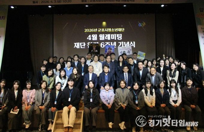 [경기핫타임뉴스=김삼영 기자] 군포시청소년재단은 4월 3일 군포시청소년수련관 청소년어울림극장에서 4월 월례미팅을 열고, 창립 6주년을 맞아 미래도약 의지를 다지는 자리를 마련했다. 이날 행사에는 군포시청소년재단 임직원, 화용선차예문화연구소 등 80여 명이 참석했다.