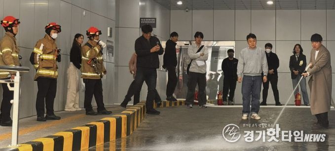훈련은 화재 발생 시 행동 요령 교육을 시작으로 ▲연기 발생 상황을 가정한 대피 훈련 ▲교육용 소화기 사용 실습 ▲옥내 소화전 살수 실습 순으로 진행됐으며, 참가자들은 실제 화재 상황에 대비한 대응 능력을 체득했다.