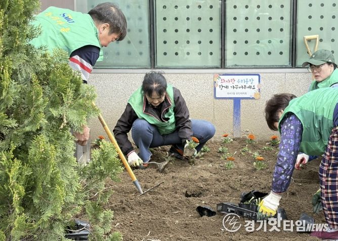 [경기핫타임뉴스=김삼영 기자] 수원시 팔달구 화서1동은 4월 3일, 새마을단체와 함께 '우리동네 새빛 새단장' 봄맞이 초화 식재를 진행했다. 이번 초화 식재는 완연한 봄을 맞아 화서1동 행정복지센터에 위치한 ‘행복정원’을 다채로운 봄꽃으로 단장하여 주민들에게 쾌적한 도시 경관과 화사한 볼거리를 제공하기 위해 추진됐다.