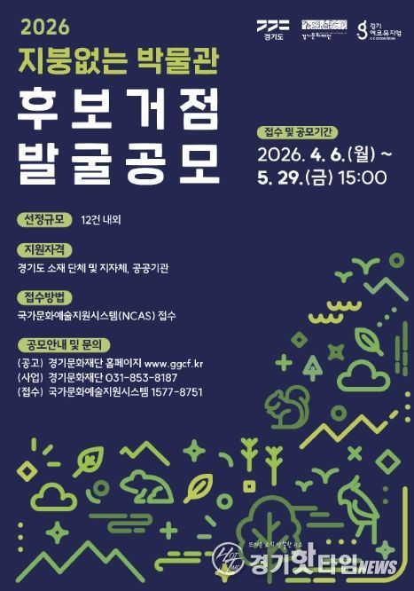 [경기핫타임뉴스=김삼영 기자] 경기도와 경기문화재단은 대표적인 경기도 지역문화 브랜드인 ‘지붕없는 박물관’ 사업의 지속 가능한 운영 기반을 마련하고, 지역의 잠재적 문화 자산의 발굴과 활용을 위해 ‘2026년 지붕없는 박물관 후보거점 발굴 공모’를 추진한다.