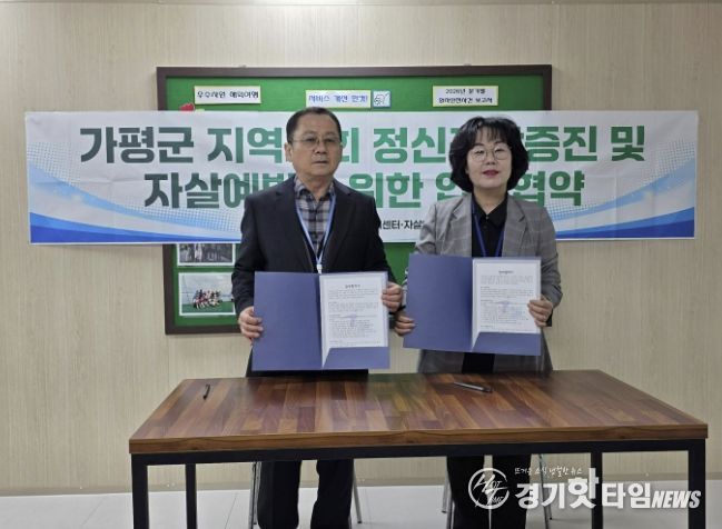 [경기핫타임뉴스=김형철 기자] 가평군정신건강복지센터·자살예방센터는 지역사회 정신건강 증진과 자살 예방을 위해 청평우리병원과 업무협약(MOU)을 체결했다고 9일 밝혔다. 지난 7일 체결된 이번 협약은 최근 증가하는 정신건강 문제와 자살 위험군에 대한 대응 역량을 강화하기 위해 마련됐다.