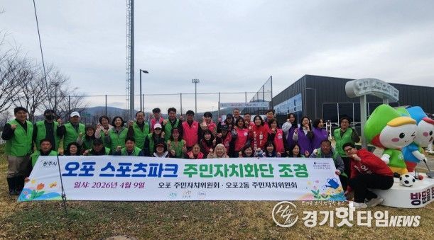 [경기핫타임뉴스=김삼영 기자] 광주시 오포1·2동 주민자치위원회는 9일 오포스포츠파크 정문 앞 화단에 꽃잔디 300여 개를 식재하며 공원 환경 개선에 나섰다.