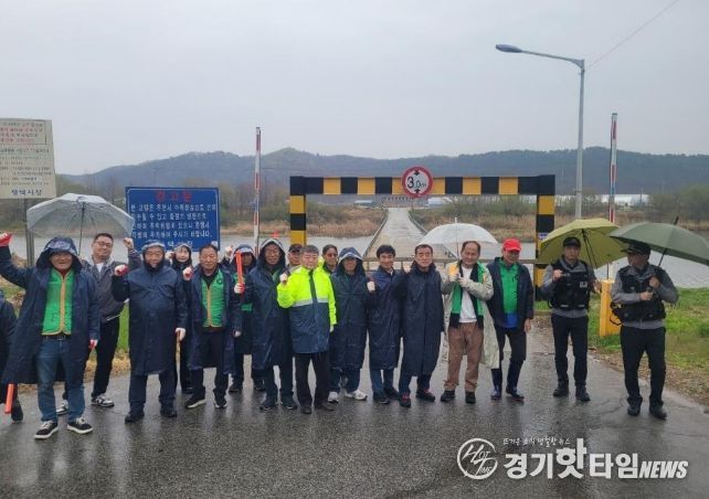 [경기핫타임뉴스=김삼영 기자] 평택시 진위면 자율방재단은 지난 9일 방재단원과 공무원 등 30여 명이 참여한 가운데 진위천 세월교에서 집중호우 대비 실제 상황을 가상한 교량 통제 모의훈련을 실시했다.