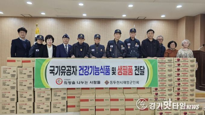 [경기핫타임뉴스=김형철 기자] 동두천시재향군인회는 지난 10일 보훈회관 4층 대강당에서 국가를 위해 헌신한 국가유공자들의 건강 증진과 생활 안정을 위해 건강기능식품과 생필품을 전달하는 나눔 행사를 개최했다.