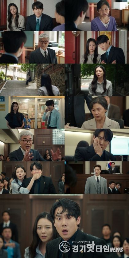 이렇게 한층 가까워진 감정으로 함께 손잡고 자료를 수집하며 열심히 재판을 준비한 신이랑과 한나현. 하지만 법정에서는 상상도 못했던 폭풍이 휘몰아쳤다. 아들 강지훈 측 변호인 양도경(김경남)은 먼저 유언장 작성 시점 조작을 주장했다. 강동식이 유언장을 만년필로 작성했는데, 잉크의 산성도를 분석해보니 2022년 이후 생산분과 일치했다. 이에 2019년 작성으로 기재된 유언장이 실제로는 중증 치매를 앓고 있던 시기에 쓰였다는 것. 문체 분석 프로그램을 통해, 유언장의 어투와 배치 등이 채정희의 글과 94% 일치한다는 결과를 내놓은 양도경은 결정적으로 려선화를 간첩으로 신고한 장본인이 다름 아닌 채정희였다는 군사 정보기관 자료까지 폭로하며 판을 뒤집었다.