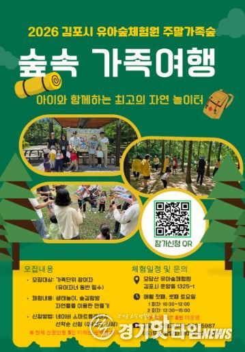 [경기핫타임뉴스=김형철 기자] 김포시는 4월 18일부터 ‘유아숲체험원 주말 가족숲 프로그램’을 본격적으로 운영한다고 밝혔다. 이번 프로그램은 유아의 자연 친화적 성장과 가족 단위 체험 기회를 확대하기 위해 마련됐다.