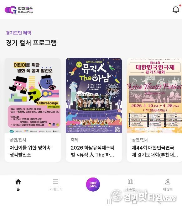 [경기핫타임뉴스=김삼영 기자] 경기도가 도민의 일상 속 문화 향유를 돕는 ‘경기 컬처패스’ 앱을 전면 개편해 사용자 주변 9,300여 개 문화·관광 시설 정보와 현장 참여형 미션 혜택을 통합 제공한다고 16일 밝혔다.