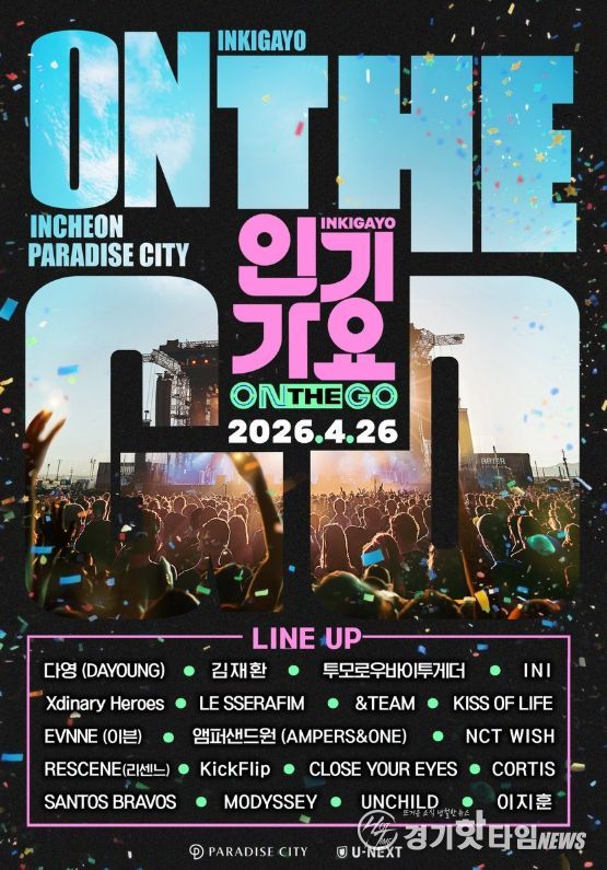 오는 4월 26일(일) 인천 파라다이스시티에서 개최되는 ‘인기가요 ON THE GO’는 SBS 대표 음악 프로그램 ‘인기가요’의 스페셜 공연 프로젝트로, 기존 스튜디오 중심의 음악 방송을 넘어 팬들이 있는 곳으로 직접 찾아가는 콘셉트로 기획됐다. 생방송 현장의 에너지와 공연의 몰입감을 결합한 새로운 형태의 K-POP 공연으로, 아티스트와 관객이 더욱 가까이 호흡하는 특별한 경험을 선사할 예정이다.