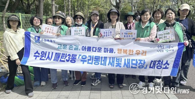 [경기핫타임뉴스=김삼영 기자] 수원시 영통구 매탄3동은 지난 4월 16일 매탄3동 새마을부녀회가 지역사회의 쾌적한 환경 조성과 공동체 의식 함양을 위해 환경정화 활동에 나섰다고 밝혔다.