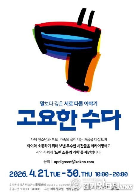[경기핫타임뉴스=김삼영 기자] 안성시 시옷갤러리는 오는 4월 21일부터 4월 30일까지 자폐 청소년과 그 가족이 함께 참여하는 전시 《고요한 수다》를 개최한다고 밝혔다.